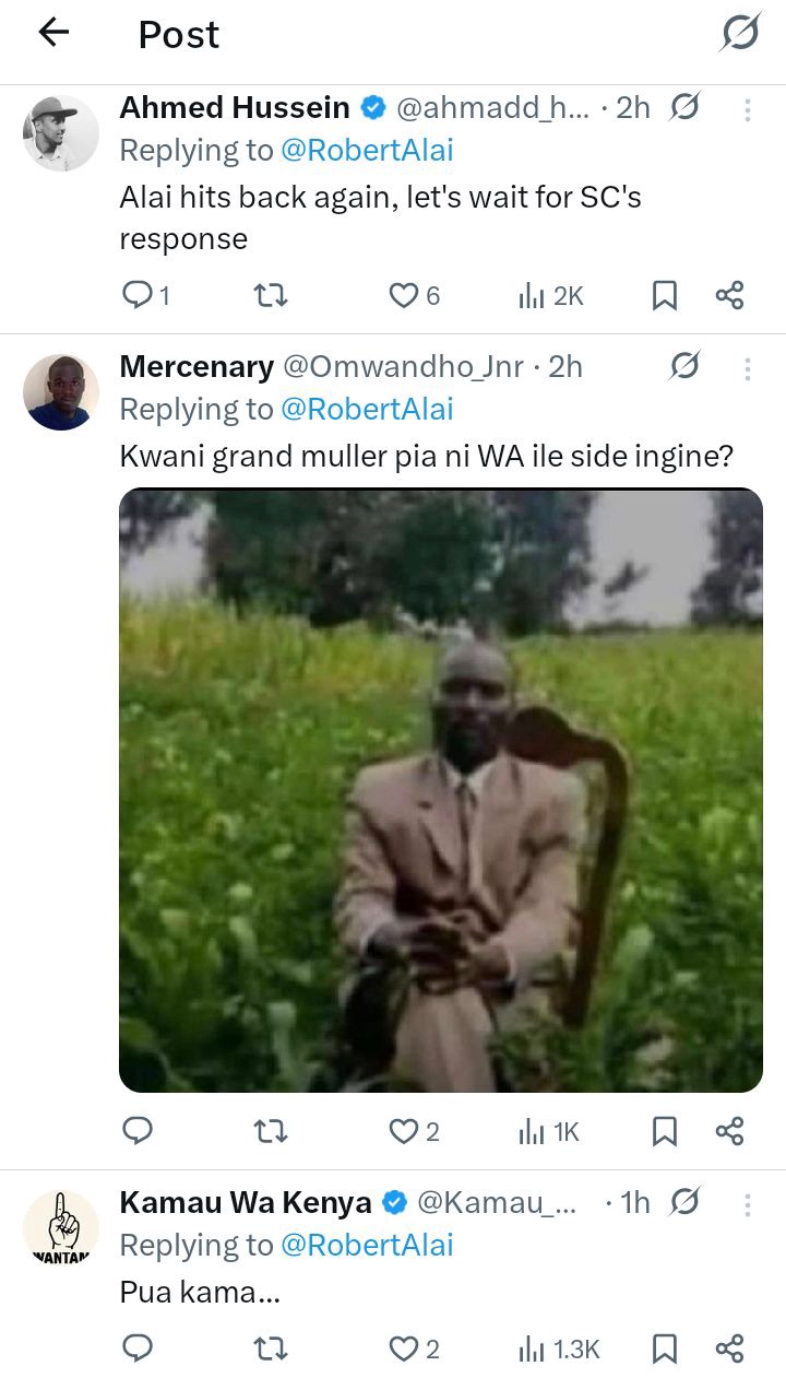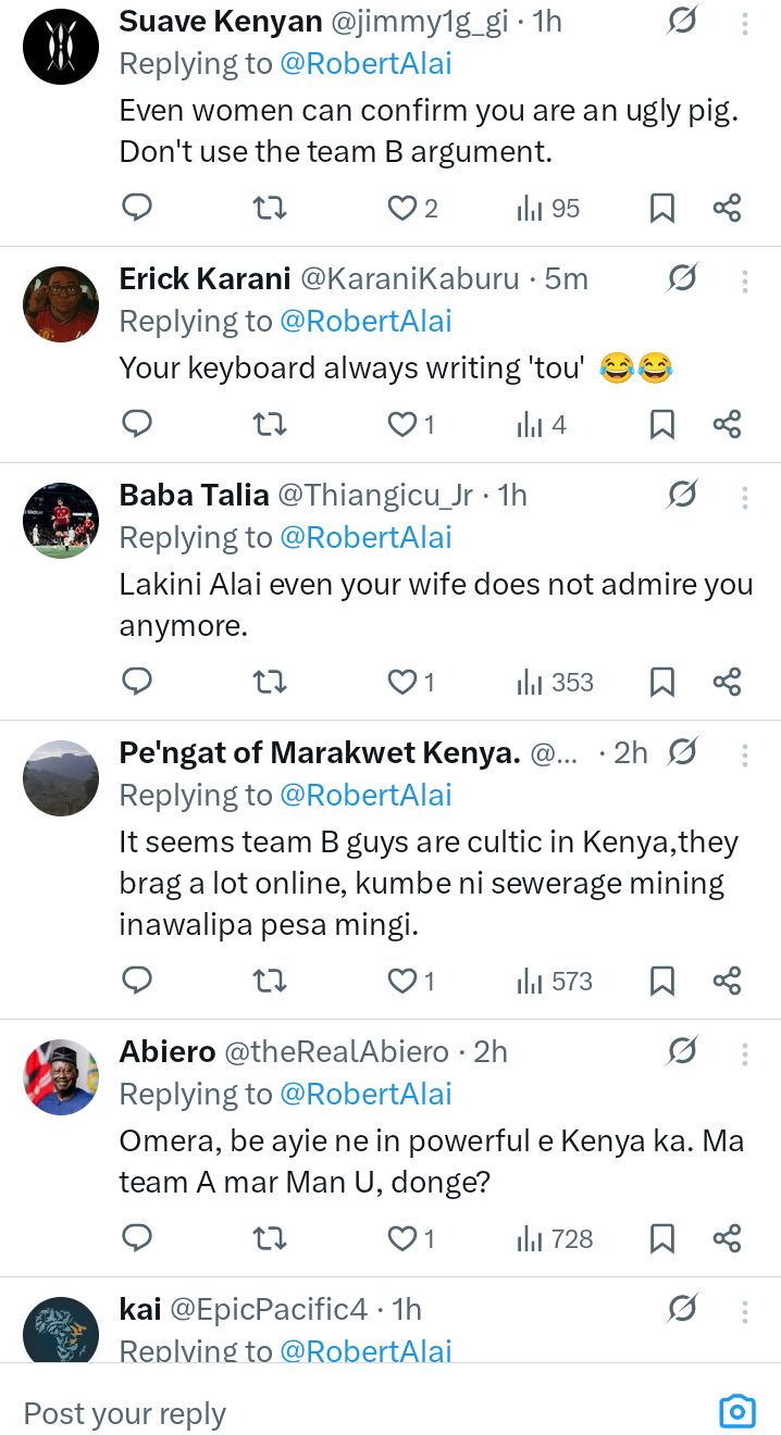 The public exchange quickly sparked reactions from Kenyans on social media. Some people supported Robert Alai, saying leaders should speak boldly without fear. Others criticized the language used, arguing that public figures should remain respectful even when they disagree.